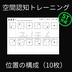 空間認知トレーニング『位置の構成』(10枚) 言語聴覚士(ST)が作った、発達をサポートするための学習教材です。 上下・左右位置の構成理解に焦点を当てた課題です。 スモールステップで段階的に取り組めるよう設計しています。 装飾を抑え、課題に集中しやすいシンプルな構成にしています。 【内容】 ・課題プリント10枚PDF ・使い方説明PDF zipファイルに入っております。 解凍後、印刷してすぐにご使用頂けます。 【注意事項】 ・本教材は主に個人でのご利用を想定しています。学校や療育施設などでのご利用については、別途ご案内をご用意しております。 ・本教材は特定の効果を保証するものではありません。一人ひとりのペースに合わせてご活用ください。 ・データの再配布、無断転載、共有はご遠慮ください。