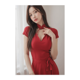 上品な色気を纏う赤のチャイナドレス美女ポスター
