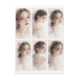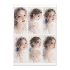 ポスター - B2この商品はpixivFACTORYで作られた商品です。サンプル画像は完成イメージのため、実物と異なる場合があります。 6つの異なる表情と視線をひとつにまとめた水彩ポートレートコレクション。 正面の透明感、横顔の静けさ、微笑みのやさしさ—— それぞれの瞬間が、繊細な水彩表現で美しく描かれています。 淡くにじむ色彩と統一された世界観が、 空間に上品で穏やかな空気をもたらします。 1枚で物語を感じられる、完成度の高いアートポスターです。