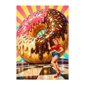 巨大グレーズドーナツとピンナップガール|カラフルポップアートポスター