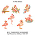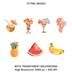 トロピカルサマーアニメクリップアート 70枚セット|商用利用OK|透過PNG|300DPI