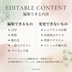 ・1事業者につき1ライセンスです ・ご自身のInstagram投稿・告知用途の範囲内でご利用ください ・商用利用は可能です ・テンプレートリンクやデータの再配布、共有、転売、譲渡は禁止です ・テンプレート自体、または一部を加工したうえでの再販売は禁止です