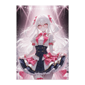 ポスター - B2この商品はpixivFACTORYで作られた商品です。サンプル画像は完成イメージのため、実物と異なる場合があります。 まばゆいスポットライトの中で、笑顔を見せる白髪のアイドル少女。 華やかな衣装とキラキラとした演出が、ステージの特別な瞬間を切り取っています。 透明感と可愛らしさが融合した、明るく魅力的な一枚です。