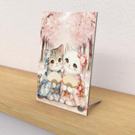 桜舞う春の猫ペア - 和装でおめかし Acrylic Photo Panel