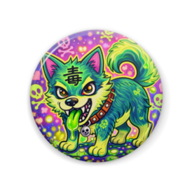 缶バッジ - 57mm一見すると普通の柴犬ですが、ほんのり毒を持つ不思議な奇獣。 近づきすぎると少しだけ危険ですが、なぜか目が離せません。 おとなしく座っていることが多く、静かに周囲を見つめています。 かわいさと危うさが同居した、ちょっとクセのある存在です。