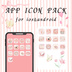 くすみピンクの北欧水彩アイコンパック シンプルスマホ用透過アイコンセット