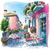 【商用利用可】イタリア街並み(水彩ストリート風景)クリップアート20点セット|高解像度JPG|ヨーロッパ風景・建物・コラージュ・ジャンクジャーナル素材|即ダウンロード