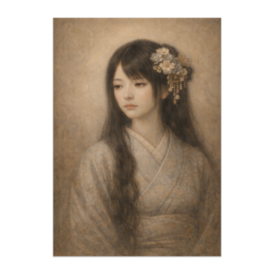 ポスター - B2この商品はpixivFACTORYで作られた商品です。サンプル画像は完成イメージのため、実物と異なる場合があります。 やわらかな光の中で、静かに視線を落とす和装の女性を描いた作品です。 青灰色の着物と落ち着いた色調が、穏やかで繊細な空気感を演出しています。 感情を強く主張しない分、見る人それぞれの解釈を引き出す余韻のある一枚。 空間に静けさと品のある美しさを添えるアートポスターとしてお楽しみいただけます。