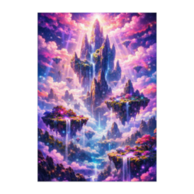 ポスター - B2この商品はpixivFACTORYで作られた商品です。サンプル画像は完成イメージのため、実物と異なる場合があります。 無数の浮遊島と光に満ちた空が広がる、壮大な幻想世界。 空へと伸びる岩山と滝の流れ、柔らかく輝く光が重なり合い、神秘的でスケールの大きな風景を描き出しています。 上下に広がる構図により、圧倒的な奥行きと浮遊感を感じられる作品です。 幻想的で明るい色彩は、空間に華やかさと開放感をもたらします。