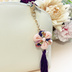 [ 商品説明 ] ご覧いただき、ありがとうございます。 つまみ細工のような布花のストラップです。表に出る柄や配色にこだわってお作りしています。ピンクと濃い紫の組み合わせで甘すぎないデザインにしました。 *布花が紐に通しづらい場合は、布花を指でつぶして通して下さい。布花は中が綿で、太い糸で縫い付けてあります。頑丈なため、つぶしても壊れることなく元の形にもどります。 *ビーズ部分は接着剤で固めており、強く刺激しないようご注意して下さい。 [ 素材 ] 布、ビーズ、糸、中綿、キーホルダー金具 [ サイズ ] 縦16.0cm(タッセル 5.7cm) 横3.7cm 高さ2.0cm *大きさの参考に着画をご覧ください。 [ カラー ] 薄いサーモンピンク、濃紫、ゴールド [ 購入の際の注意点 ] *アレルギー対応パーツではないため、金属アレルギーの方はご注意ください。 *ご希望の方はオーガンジーの小袋で簡易的なラッピングをさせていただきます。 *1点1点、心を込めてつくっているので少しずつ個体差があり、すべて世界でひとつだけの作品になっています。 *注文確定と同時に制作いたしますので、お届けまでキャンセルはできかねますのでご注意ください。 商品到着まで仕事上の都合により、約4日から7日前後(一部地域を除く)でお届けいたします。