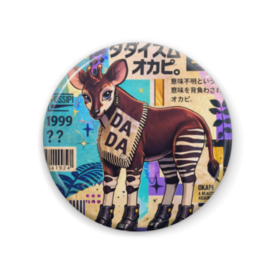缶バッジ - 57mm意味を持たないこと、意味がある。 論理を拒否し、感覚で存在する生き物ーーダダイズムオカピ。 首は長く、思考は自由。模様は秩序を無視しながらも、どこか美しい。 見る者の解釈によって完成する、不完全な完成形。 日常に少しの違和感と余白を。 この一枚が、あなたの世界にしずかなノイズを与える。