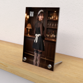 アクリルフォトパネル - 縦100 × 148mm「今夜は、耳から酔いしれませんか?」 シリーズ最新作は、ミステリアスな魅力あふれるメイド・Reinaが登場。 これまでの「夢みる」世界観とは一線を画す、落ち着いた「大人の夜」をお届けします。 ◆ 視線を奪う、こだわりのバックショット シックな黒の衣装に、凛とした立ち姿。そして、今回一番のこだわりである「バックシーム・ストッキング」のラインが、彼女の謎めいた色香を際立たせます。アクスタを飾ったその瞬間、あなたのデスクは静寂なジャズ・バーの特等席に。 ◆ 贅沢な13分34秒の没入体験 左上のQRコードを読み込めば、Reinaのしっとりとした囁きから始まります。 「今日のご主人様のために、大人のジャズをご用意しました……」 その言葉に続いて流れ出すのは、心に染み入るサックスの音色。13分34秒という長い尺が、日常の喧騒を忘れさせ、あなたを深いリラックスへと誘います。 ◆ 商品内容 【聴くアクスタ】Reina(レイナ)本体 限定ボイス&サックスジャズBGM(13:34) 落ち着いた大人の女性のトーンで、あなたを優しくもてなします。 本格的なジャズ・セレクションが、上質な空間を演出。 忙しい一日の終わりに。 Reinaが案内する「音の魔法」で、特別なひとときをお過ごしください。