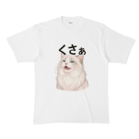 Tシャツ - XL - 白「はい、プレゼント!」からの「くさぁ」😂 猫の自由奔放さを詰め込んだ両面プリントTシャツを作りました! 部屋着としてはもちろん、猫好きさんとの集まりで会話のきっかけになること間違いなしのアイテムです。 この商品はpixivFACTORYで作られた商品です。サンプル画像は完成イメージのため、実物と異なる場合があります。
