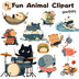 ファンアニマル クリップアート素材集 85点|透過PNG・300DPI|かわいい動物イラスト・商用利用OK
