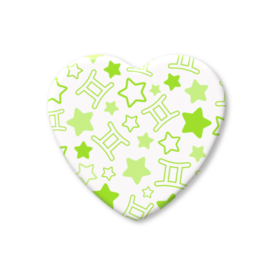 黄緑色のふたご座のハート缶バッジ