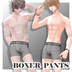 ✨販売記念セール中! ~5/5✨ フルパック - 980円 → 800円 単体 700円 → 600円 ♂️ボクサーパンツ - BOXER PANTS for Men's - ♂️ メンズアバターの下着って少ないよね!ということで、おしゃれなボクサーパンツを作りました。 男らしさを強調しつつ、シンプル&クールでかっこいいデザインを心がけました。 恋人との甘い時間はもちろん、チルワールドでのまったり時間にぜひ、着用下さい! ・前部分とお尻のボリュームアップシェイプキーつきです。 ・前腹部に手、足、顔を近づけると大きくなるギミックがあります。EXメニューでON/OFF可能(デフォルトオフ)です。 ※水瀬にはギミックが入っていません。ご了承下さい。 実際の動きはこちらの動画をご覧ください。 https://x.com/misery_vrc/status/2044023881472847921 <対応アバター> ・水瀬 (Minase) - 販売停止中 ・斑霞 (Hanka) https://booth.pm/ja/items/6970249 ・狛乃 (Komano) https://booth.pm/ja/items/5260363 ・Plushead アルエ (Alué) - https://booth.pm/ja/items/6957623 墨惺 (Bokusei) - https://booth.pm/ja/items/5727810 and more ・士堂 (Shidou) https://booth.pm/ja/items/8086741 ・珍飯亭 (TinmeshiTei) 伊依 (Iyori) - https://booth.pm/ja/items/6958479 ゼヴ (Zev) - https://booth.pm/ja/items/6717995 and more ・彼方 (Kanata) https://booth.pm/ja/items/6813995 ・真央 (Mao) https://booth.pm/ja/items/6846646 ・優世 (Yusei) https://booth.pm/ja/items/6809443 ・シェーダーはlilToonを使用しています、先にインポートをお願いします。 https://booth.pm/ja/items/3087170 ⚠ 注意事項(必ずお読みください) ・本商品は VRChatでの使用を想定した衣装データです ・Modular Avatarでの導入を想定しています ・アバター本体は付属しません ・対応アバター以外での使用は想定していません ・Unity・VRChatの仕様変更により、 将来的に動作しなくなる可能性があります ・改変は自己責任でお願いします 不具合や質問はBoothのメッセージよりご連絡ください。 ------ English ----- ♂️Boxer Shorts - BOXER PANTS for Men's - ♂️ There aren’t many underwear options for male avatars, are there? So, I created these stylish boxer shorts. I aimed for a simple, cool, and stylish design that emphasizes masculinity. Please wear them not only during sweet moments with your partner but also when you’re relaxing in Chill World! ・Includes volume-enhancing shape keys for the front and rear. ・Features a gimmick that makes the front area grow larger when you bring your hands, feet, or face close to it. You can turn it on or off via the EX menu (default: off). *Please note that this gimmick is not included in the Minase avatar. <Compatible Avatars> ・Minase - Currently out of stock ・Hanka https://booth.pm/ja/items/6970249 ・Komano https://booth.pm/ja/items/5260363 ・Plushead Alué - https://booth.pm/ja/items/6957623 Bokusei - https://booth.pm/ja/items/5727810 and more ・Shidou https://booth.pm/ja/items/8086741 ・TinmeshiTei Iyori - https://booth.pm/ja/items/6958479 Zev - https://booth.pm/ja/items/6717995 and more ・Kanata https://booth.pm/ja/items/6813995 ・Mao https://booth.pm/ja/items/6846646 ・Yusei https://booth.pm/ja/items/6809443 ・This product uses the lilToon shader; please import it first. https://booth.pm/ja/items/3087170 ⚠ Important Notes (Please read carefully) ・This product is costume data intended for use in VRChat ・It is designed for use with Modular Avatar ・The avatar itself is not included ・It is not intended for use with avatars other than those listed ・Due to changes in Unity or VRChat specifications, it may stop working in the future ・Please modify at your own risk Please contact us via Booth messages for any issues or questions.