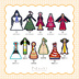 約4〜8cm/パール調の用紙でさりげないきらきらのシール 【アジアの民族衣装の女の子】 ①カザフスタン ②ウズベキスタン ③キルギス ④タジキスタン ⑤トルクメニスタン 【MATSURINUI/東北のお祭り】 ⑥岩手さんさ ⑦宮城七夕 ⑧山形花笠 ⑨秋田竿燈 ⑩青森ねぷた ⑪福島わらじ
