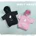 HESHEデザインのとろけるハートをプリントしたオーバーサイズのフーディです。裾にはゴムが入っておりくしゅっとしてるのがポイントだったり。