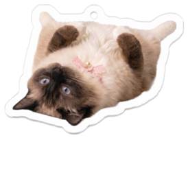 アクリルキーホルダー - 50 x 50 (mm)猫好きさんの心を掴む、愛らしいラグドール猫ちゃんの「へそ天」ポーズをそのままキーホルダーにしました。鮮やかで美しいサファイアブルーの瞳と、首元の小さなパールをあしらったピンクのレースリボンがポイントです。無防備に仰向けでお腹を見せるその姿は、見るたびに癒やされること間違いなし。鍵やバッグ、ポーチなど、お好きなところに付けて、毎日一緒にお出かけできます。自分用にはもちろん、猫好きの方への贈り物にもぴったりです。 この商品はpixivFACTORYで作られた商品です。サンプル画像は完成イメージのため、実物と異なる場合があります。
