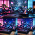 【3K高画質】電脳サイバー和室 背景素材 3種セット — 雨・星・夜桜 —