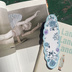 クラシックテイストの上品な青いバラが描かれた栞です。 スカラップのような、なみなみの曲線はレースをイメージしました。 瑞々しさが表現できるよう、ひとひらずつ丁寧に心掛けて描きました。 ヨーロッパの古道具や布もの、紙もの、陶器を眺めるのが好きで、そういったものをモチーフにしています。 貴重なヴィンテージは気軽に使うのを憚られるけれど、日常使いできる栞なら自分で作って気軽に使える…そんな思いで作りました。 スカラップは「ダイカット加工」 紙は厚みがあり、触ったときの感触もいい、クラシック感と線の繊細さがちゃんと出る「アラベール スノーホワイト200kg」 パッケージも金色ハトメとボルドー色の透ける紙で彩っています。 プレゼントにもぜひ。 こちらは青色の栞、商品ページになります。(一緒に掲載されている黄緑の縁取りの栞は別ページにあります)