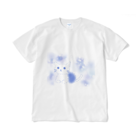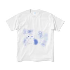 Tシャツ(短納期) - XL - ホワイト毛糸のにゃんこはふわふわしている。 手元に毛糸を置いている。 この商品はpixivFACTORYで作られた商品です。サンプル画像は完成イメージのため、実物と異なる場合があります。