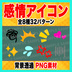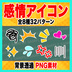 動画編集などで使える感情アイコンの背景透過PNG素材です。 8種の感情アイコンにそれぞれ カラー縁あり、カラー縁無し、黒単色、モノクロ縁ありの4パターンで計32パターンの素材がセットになっています。 Premiere Proをお使いの方はモーショングラフィックステンプレート(MOGRT)の商品もご検討ください。 https://booth.pm/ja/items/8200408 形式:png