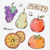 【水彩イラスト】 秋のフルーツ・果物 【素材】りんご、ぶどう、柿、梨、オレンジ