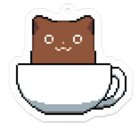 アクリルキーホルダー - 50 x 50 (mm)ゲーム「Coffee Cat Café」より コーヒーキャットのドット絵アクリルキーホルダー この商品はpixivFACTORYで作られた商品です。サンプル画像は完成イメージのため、実物と異なる場合があります。