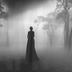 【4K・高解像度】洋風ホラー 背景素材:霧と光、女性のシルエット 3枚セット