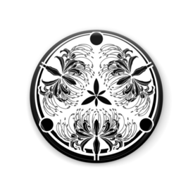 缶ミラー - 56mmこの商品はpixivFACTORYで作られた商品です。サンプル画像は完成イメージのため、実物と異なる場合があります。 彼岸花をモチーフにした家紋の缶ミラーです。 ちょっとしたアクセントに。
