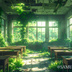 緑に侵食された廃校教室|背景素材(5000px)