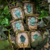 サイズ:約H6×W5×D1.5cm ※お品によって数ミリの誤差がございます。予めご了承ください。 素材:樹脂粘土、塗料、木材、綿、天然苔、紙、インク、金具