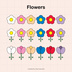 【Flowers Clipart Set】レトロポップなお花クリップアート素材15点セット|RGB 1080×1080 PNG|商用利用可