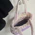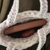 サイズは画像で確認ください 手編みの手提げバッグです 可愛く仕上がってますので気に入って下さった方の手に渡れば幸いです。 白はホワイトというより、オフホワイトです 閉じるためのマグネットはついておりません 気になるようであればご自身でリメイクしてあげてください。 Seriaなどに色んなマグネット売ってあります(。・・。)♡ 参考資料として スマホ(GALAXYs10)とイヤホンが入りますが 結構ギリギリです スマホは立てるとはみ出します 折りたたみ財布、ハンカチ、リップなど コンビニとか軽いお出かけにオススメです ※スマホとイヤホンは付属しておりません。 最後の画像の紫バッグは別ページで販売中のため 付属されません 丁寧に編んでおりますが素人のハンドメイドの作品ですので、編み目の不揃いや歪みがありますことをご了承ください。 完璧を求める方はご遠慮ください デバイスのご使用環境等により、実際の商品と比較して色味等が若干異なって見える場合があります。 ご購入者様の都合での返品交換はお受けできません。 予めご了承ください。