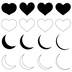 同人誌表紙やタイトルロゴ、配信サムネイル,、TPRGなどに使いやすい、 ハート・星・キラキラ・ライン装飾を収録した図形素材4枚セットです。 クール系、ポップ系、かわいい系、記念配信、告知画像など幅広いデザインにおすすめです。 クロスハッチだけでなく月やハート、星やバツなどの基本図形はほとんど入っています。