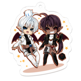 アクリルキーホルダー - 50 x 50 (mm)この商品はpixivFACTORYで作られた商品です。サンプル画像は完成イメージのため、実物と異なる場合があります。 オリジナル創作の作品 白い子がブラウ、黒い子がロードゥ。 双子の悪魔です。