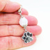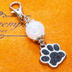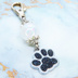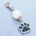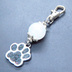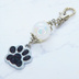 シルバーカラー 大きめ肉球チャームとクリアホワイトのビーズを組合せたキーホルダー 金具変更可