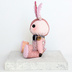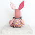 ピンク色を基調としていろんな布が使われているウサギさん🐰 かわいい要素をぎゅうぎゅうに詰め込んだような子です。