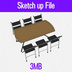 【3D素材 / SketchUp&cs3o】折りたたみテーブル&パイプ椅子セット (多目的・学校・オフィス)