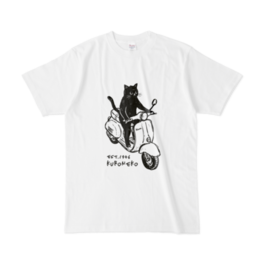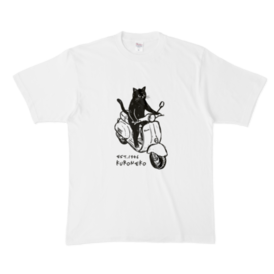 Tシャツ - XL - 白スクーターでちょい乗りする黒猫くんです♪
