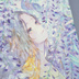 オリジナル 手描きイラスト 女の子 「差し込む藤色」 正方形サイズ 透明水彩 原画