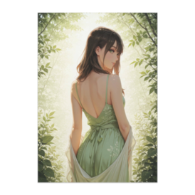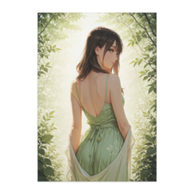 ポスター - B2この商品はpixivFACTORYで作られた商品です。サンプル画像は完成イメージのため、実物と異なる場合があります。 やわらかな木漏れ日の中で振り返る女性を描いた、透明感あふれるポスター作品です。 ミントグリーンのワンピースと自然に溶け込む背景が、穏やかで幻想的な空気感を生み出しています。 背中からの振り返り構図が印象的で、静けさと美しさを感じられる一枚です。