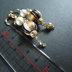 刀剣乱舞の伊達組をイメージした巻玉耳飾り。 絹糸を巻いているので、すべすべとした手触りに、絹特有の光沢があり、けば立ちにくくなっています。 下記を最後まで読んで、ご注文の際はご注意ください。 ~販売~ 期間限定、個数限定で行っています。 Twitterでお知らせしています。 受注生産ですので、発送までお支払い完了から1週間ほどお時間をいただきます。 ~商品情報~ ・2玉(両耳)のお値段です。 ・ピアス(2番)、フープイヤリング(1番)をご希望の場合は注文後、BOOTH内メッセージにて24時間以内にお知らせください。ない場合はイヤリング(3番)になります。 ・金属アレルギー等の方は樹脂変更を同時購入の上、BOOTH内メッセージでピアスかイヤリングかお知らせください。別途料金(100円)かかりますが、樹脂製品とお取替えします。 ピアス→樹脂ピアス イヤリング→ノンホールピアス ~注意~ 定形外にて発送を行っております。 追跡サービス、対面受け取りご希望の方はレターパックプラス(360円) 追跡サービス、郵便受け受配達ご希望の方はレターパックライト(360円) も扱っておりますので、発送方法変更の場合はBOOTH内メッセージにてお知らせください。 手作りですので、個々で多少の色味や形の差があります。 一つ一つ心を込めて丁寧に作っていますが、手作りですので、既製品よりも強度は弱いです。 無理に力をかけることのないよう、丁寧な取り扱いをお願いします。 観覧環境によって画像と商品の色合いが変わって見える場合がございます。 ご了承ください。