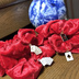 ニューダンガンロンパV3の登場キャラクターをイメージしたシュシュになります。 ¥300 王馬…スカーフをイメージしたチェック柄 獄原…スーツをイメージした茶色の生地に蝶のチャーム 最原…学ランをイメージした黒のストライプ生地に星のチャーム 春川…セーラー服をイメージした赤の生地に白リボン、薔薇のチャーム 東条…制服、カチューシャをイメージしたグレーの生地に黒レースを挟んだシュシュ 入間…セーラー服をイメージしたピンクの生地に水色のリボン 白銀…制服をイメージした生地にオレンジのリボン/スカートをイメージしたリボンを挟んだシュシュ 夜長…作務衣をイメージした黄の生地に貝のチャーム ¥500 天海…服をイメージしたストライプ生地に錨のチャーム 夢野…赤のベロア生地にトランプのチャーム 真宮寺…カーキのツイル生地にエンジの江戸打ち紐と薔薇のチャーム 手作り品につき個体差があります。予めご了承ください。