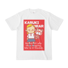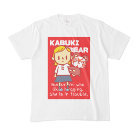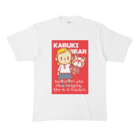 Tシャツ - XL抱きつくのが好きなカブキグマ・ヌイグルミと困惑ガールのTシャツです★色ちがいもあるのでそちらもどーぞ🎵 サイズはS~XL