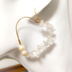 クリスタル(水晶)のさざれビーズとパールビーズを使用した、ハート型のピアスです。 大きめのデザインですが、クリア×ホワイト×ゴールドなので清楚で上品な印象を保っています。パールはコットンパール風で軽量です。 この冬はちょっぴり大胆に耳元を飾りませんか?♡ ご自分用に女子会やデートなど…またご友人へのプレゼントにやクリスマスプレゼントにもおすすめです。 ・ハートのサイズ:約35×36mm ・ペア売りになります。 ・定形外以外の発送方法をご希望の場合、注文前にご相談ください。 *** 気持ちよくお取引をしていただくために、ご注文の前にpixivのプロフを必ずご一読お願いします。(注文=注意事項に納得していただいたと判断させていただきます) https://www.pixiv.net/member.php?id=8544132