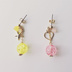 えふしライブ 末松デュエット曲をイメージしたピアス/イヤリングです。 曲調に合わせてポップなデザインにしました。 五男イメージのほうには星の、六男イメージのほうにはハートのチャームを配置しています。 【サイズ】 長さ約2.5cm 【重さ】 片耳約1.5g ※スタッドピアスの場合 【主要素材】 クラックビーズ カルセドニー(天然石) メタルチャーム 【金具変更】 ネジばね式イヤリングへの変更無料 ※イヤリングの場合はメッセージにてお知らせください。指定が無い場合はピアスでのお仕上げとなります。 【発送】 プチプチ簡易包装のうえ、あんしんBOOTHパックでの匿名発送予定 *素人によるハンドメイド作品のため、既製品に比べ仕上がりに粗があることをご了承ください。