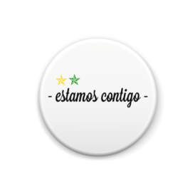 缶バッジ - 25mmスペイン語で「私達はあなたと一緒です」を意味する「Estamos contigo」のメッセージと、黄色と緑の星をあしらったシンプルなデザインの缶バッジ。 バッグ等のワンポイントにいかがでしょう。 【この商品はpixivFACTORYで作られた商品です。サンプル画像は完成イメージのため、実物と異なる場合があります】