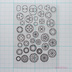外トロコイド曲線をOHPフィルムに印刷しました。 写真で白くみえるところは実際は透明です。 必要な部分をはさみで切り取り、レジン封入用にお使いください。 トロコイド (trochoid) とは、円をある曲線(円や直線はその特殊な場合)にそってすべらないように転がしたとき、その円の内部または外部の定点が描く曲線。円の外周にそって動かしたものを外トロコイド(またはエピトロコイド)といいます。定円の半径、動円の半径、動円の描画点の半径の比率によって、さまざまな曲線が描けます。 外トロコイドの図形38種を収録しました。 全38ピース。 サイズ 長辺8~22mm程度。 【素材】 OHPフィルム 厚さ0.10mm ※「オーダーメイド レジン封入用フィルム」https://puikko.booth.pm/items/612849 の申し込みも受け付けています。このフィルムに収録した絵柄のサイズを変えてほしい、特定の絵柄のみ複数収録してほしいなどのご希望もこちらからどうぞ。 【サイズ】 幅105×高さ148mm(A6判、ほぼはがきサイズ) 【購入の際の注意点】 写真と実物では多少色味が異なる場合があります。 市販のレーザープリンタを使ってOHPフィルムに印刷しているので、精密さに欠けるところがあります。 このフィルムを使用して制作したオリジナル作品の販売はOKです。 フィルム自体の転売やコピーはおやめください。